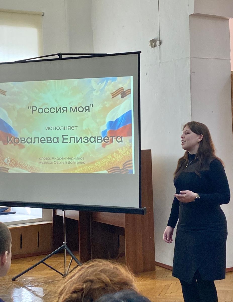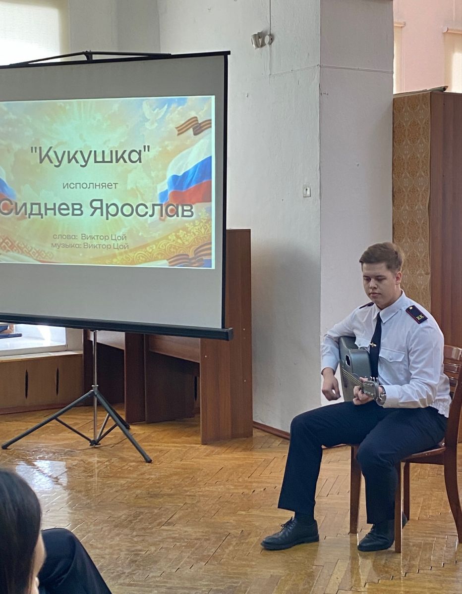 Зрителям были предложены песни «Россия моя», «Одного» исполнении Ковалевой Елизаветы (Юр-23-1) и песня «Кукушка» в исполнении Сиднева Ярослава (Кадетский класс).