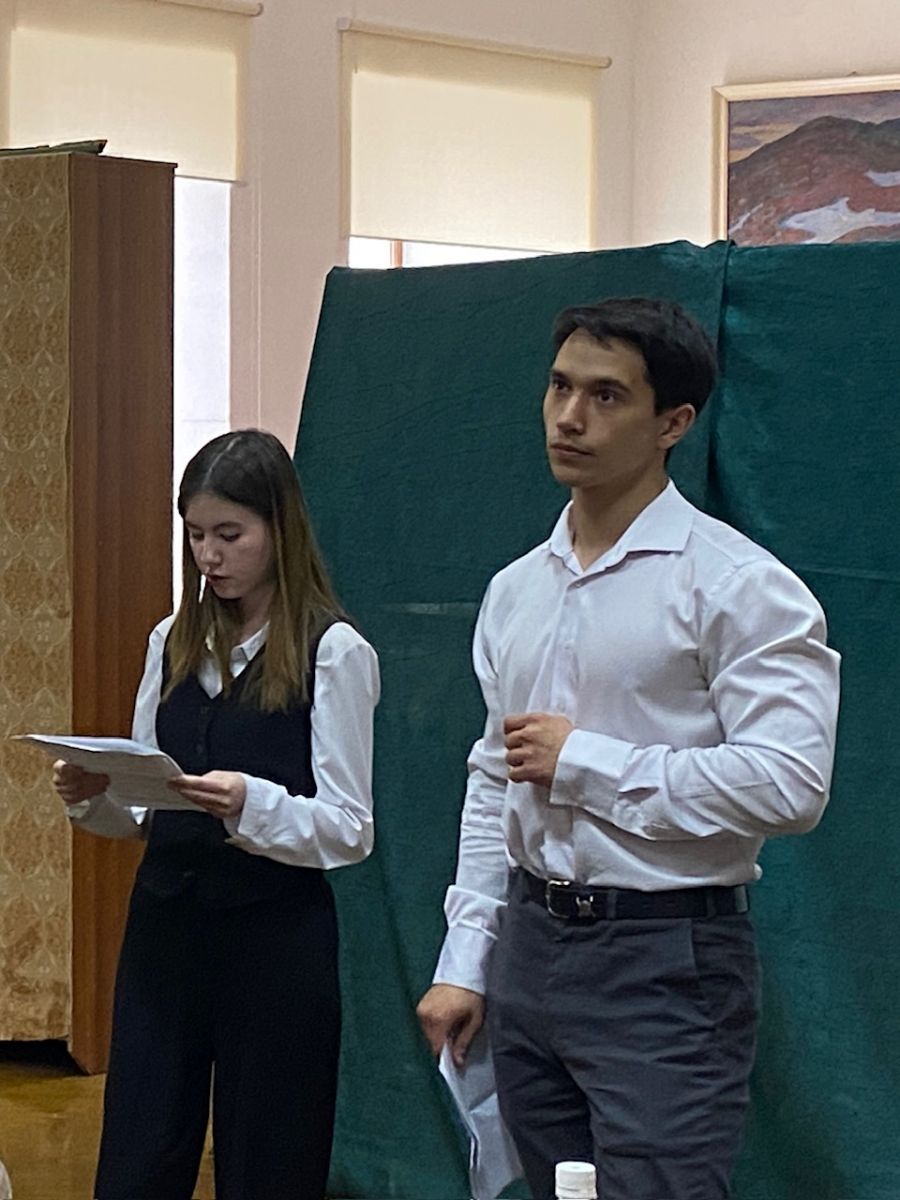 Участники мероприятия: Иваницкий Егор и Кургузова Марина (Юр-23-1), Федурин Адриан (иЮр-25-2), Бадаева Дарья(Юр-25-1), через инсценировку и монологи показали самоотверженный подвиг пожарных. Их труд и мужество стали символом человеческой стойкости перед лицом страшной угрозы. Емельянова Виктория (Юр-25-1) рассказала о забайкальце, военном летчике Валентине Алексеевиче Тугае, который на вертолете Ми-6 гасил раскаленный реактор Чернобыльской АЭС, сбрасывая свинцовые плиты.