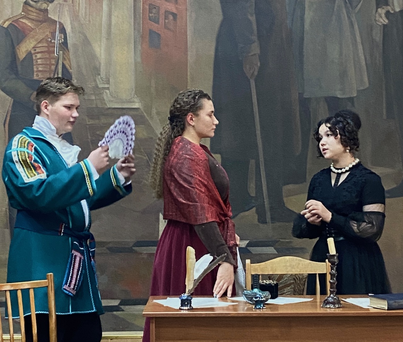 Участники Литературного клуба представили яркие, выразительные инсценировки отдельных сюжетов: «Собрание тайного общества», «Екатерина Трубецкая на приеме у губернатора Иркутска Цейдлера», «Иван Анненков и Полина Гебль. История любви»
