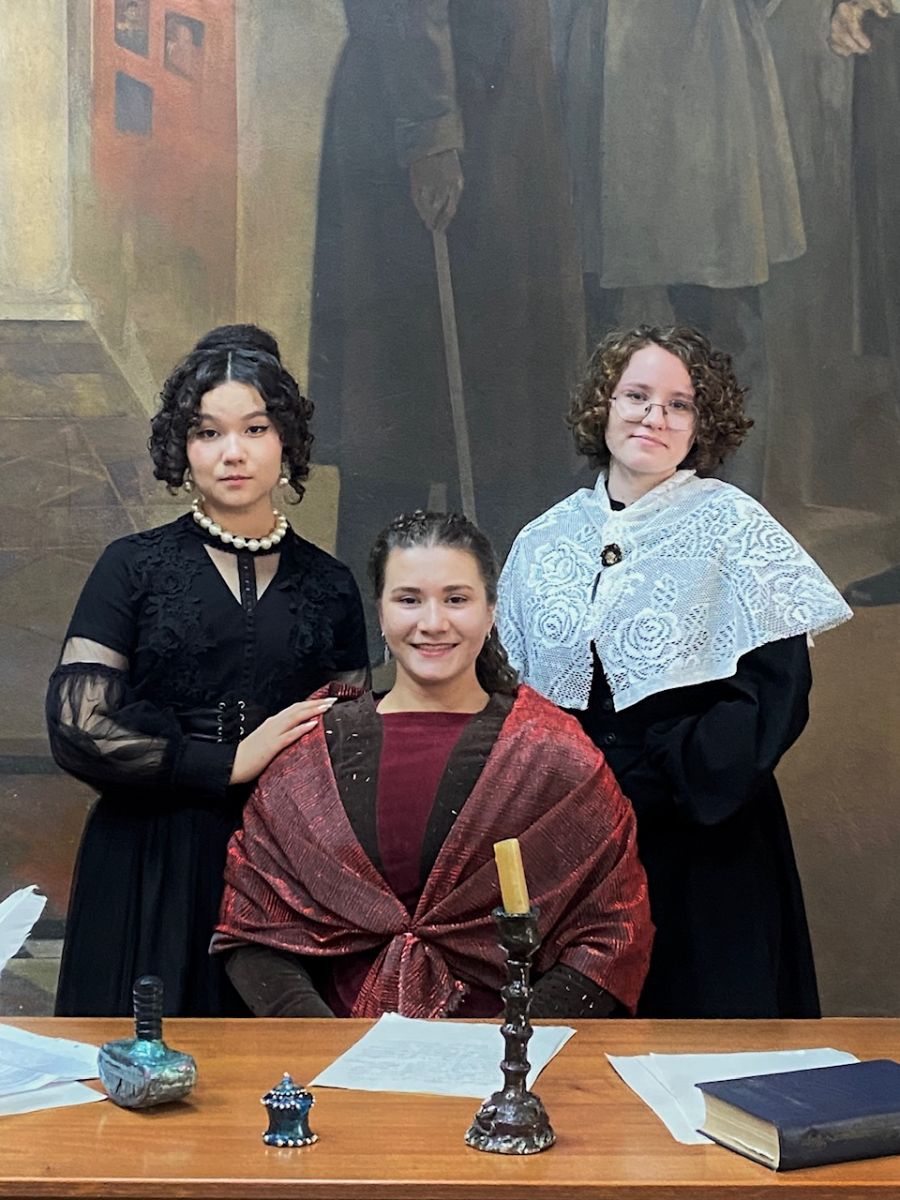Сами студенты – участники вечера рассказали, что подготовка к проведению мероприятия помогла им узнать новые факты о восстании декабристов, о их дальнейшей судьбе. Софья Дунаева поделилась: «Тема декабристов была мне интересна еще в школе. Сегодня я постаралась передать образ моей героини – удивительной женщины Александры Муравьевой. Надеюсь, что у меня получилось.