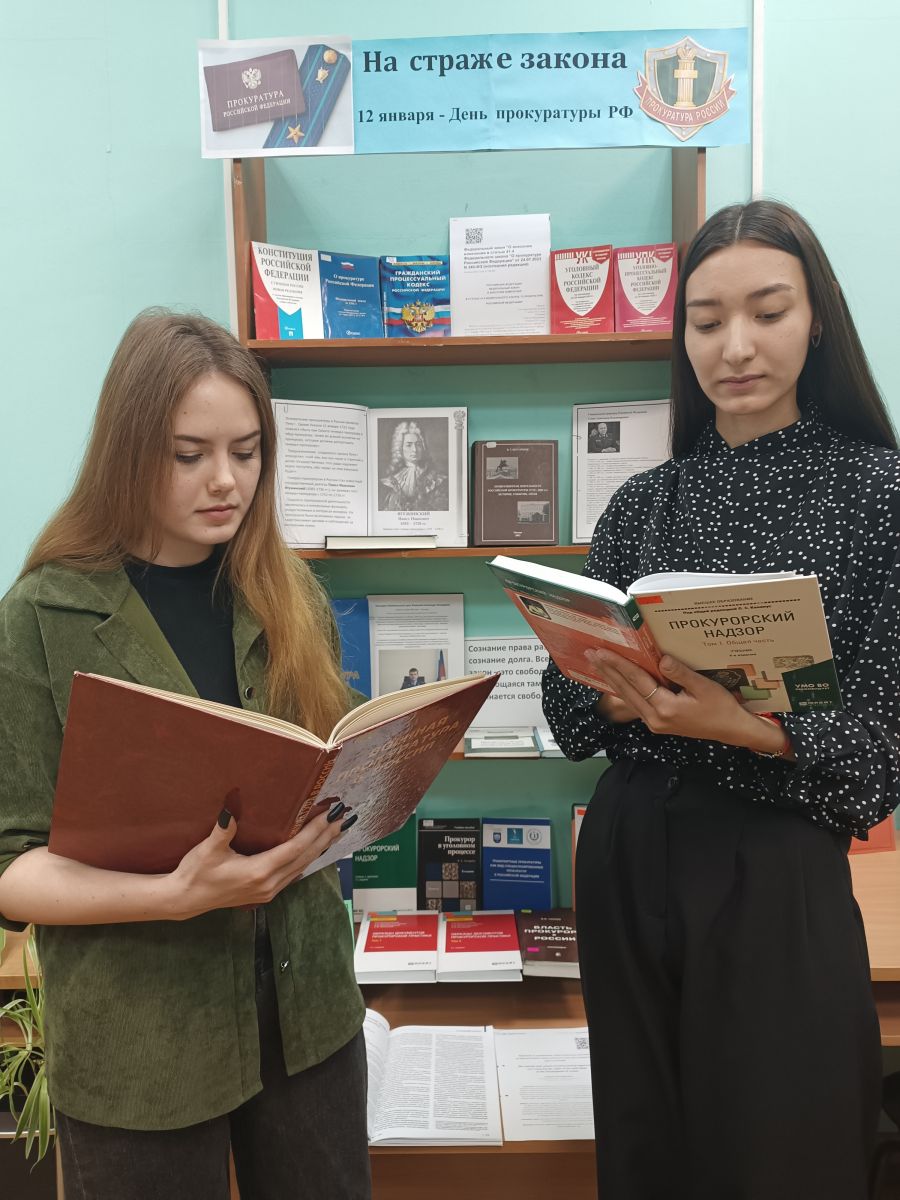 В библиотеке юридического отдела ЧИ БГУ подготовлена книжная выставка «На страже закона», ко Дню работника прокуратуры Российской Федерации. Выставка рассказывает о прошлом и настоящем прокуратуры России, которая берет своё начало с XVIII века, когда, Указом от 12 января 1722 г. император Петр I учреждает прокуратуру Российской Империи с целью борьбы с должностными преступлениями, казнокрадством и взяточничеством.   Прокуратура активно защищала государство и выступала, по выражению Петра I, «оком государевым». Первым Генерал-прокурором стал Павел Иванович Ягужинский, российский государственный деятель и дипломат.