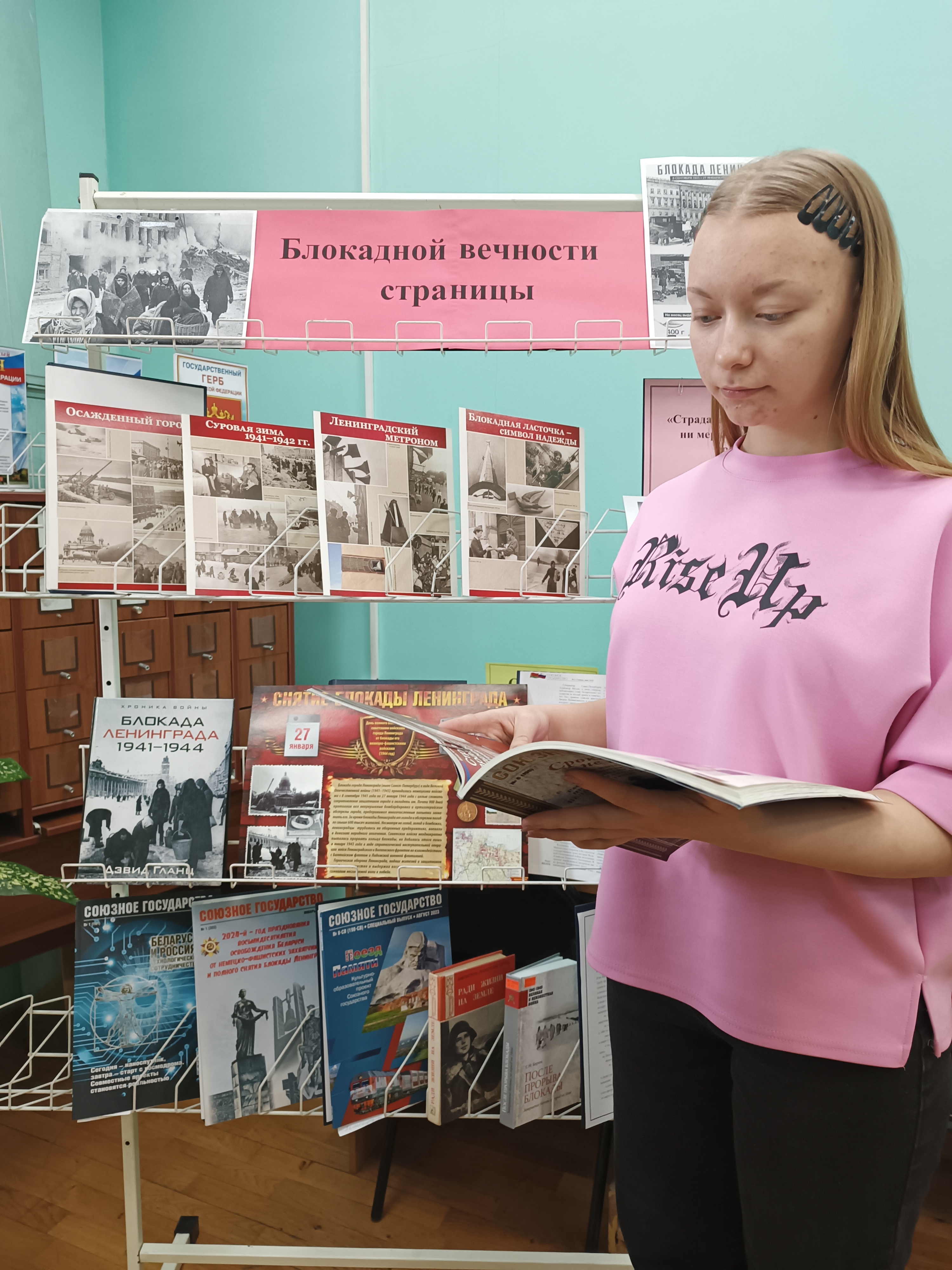 Ежегодно 27 января в России отмечается День полного освобождения города Ленинграда от фашистской блокады в годы Великой Отечественной войны. Этому событию посвящена книжная выставка «Блокадной вечности страницы», оформленная в библиотеке юридического факультета ЧИ БГУ.